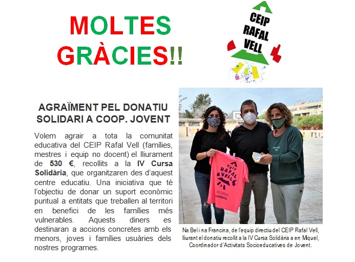 AGRAÏMENT PEL DONATIU SOLIDARI A COOP. JOVENT