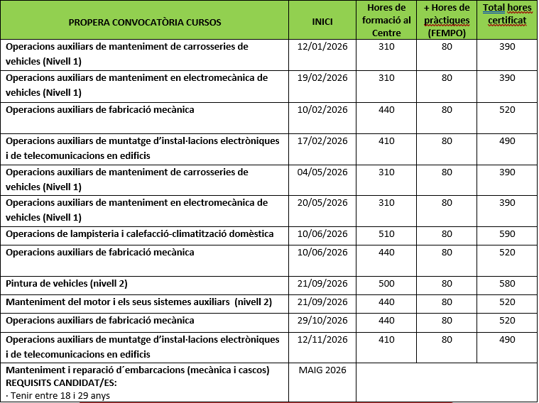 Certificats de Professionalitat Graus B i C per a joves de 16 a 29 anys