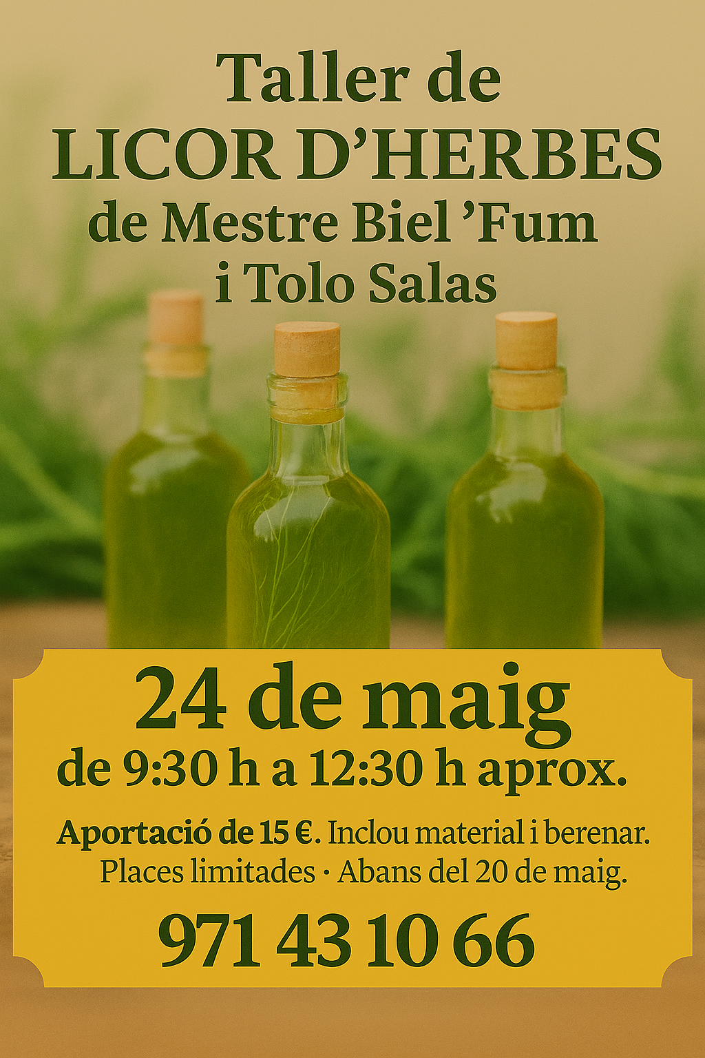Davantal, Botella o garrafa de vidre (vidre fosc, amb tap), Anís dolç, Embut que passi per la botella, Ganivet, Pal tipo xinés.